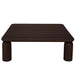 Durable and weather-resistant, the Barclay outdoor coffee table adds a playful touch to the outdoor space without compromising on elegance. This solid teak coffee table features a slatted top and round cylindrical legs in a toasted brown finish. Its unique design features a floating effect where the sloped top piece interacts with the legs, creating visual interest.