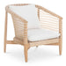 Named in tribute to the skilled weavers of Panama, Kuna showcases the traditional Lloyd Loom technique set against a contemporary teak wood frame. Over time, this gorgeous wood turns into a darker patina which looks all the more stunning contrasted against the clean white fabric upholstery of this versatile design. Easy-to-wash removable cushions keep this outdoor lounge chair bright, beautiful and ready for the sun.