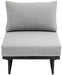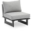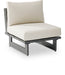 Create your own custom contemporary look on the deck or porch with the addition of this Maldives outdoor patio armless chair. Part of a large collection that lets you mix and match modular pieces to get the look you crave most. This armless chair has water resistant fabric with a base made from grey aluminum, so it's sturdy, tough, and ready to face the elements with impeccable beauty, season in and season out. Shop the contemporary pieces in this collection to create the outdoor entertaining area of your dreams.