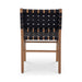 The Mira outdoor dining chair features a solid teak frame intricately adorned with contemporary webbing-strap detail, adding captivating textural interest. Its alluring woven design lends an air of openness and intricate detail to any setting. Over time, the teak and oils imbued in the wood gracefully weather into a distinguished silver-grey patina.