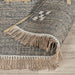 Reminiscent of traditional patterns, this handwoven rug features a sustainable blend of wool, jute, and cotton. Dyed cotton fringe softens each edge while contrasting, natural hues bring an organic vibe to the geometric pattern.