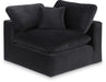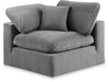 Give your space a whole new look with this Comfy velvet corner chair. This handsome chair fits nicely with other items in the Comfy collection and is a versatile seating option designed for adaptability, comfort and style. Wrapped in rich durable velvet upholstery, this chair offers a plush embrace of overstuffed down feather cushions, carefully crafted to deliver the highest level of comfort. The perfect seat for creating an oasis for relaxation, this chair has thick foam surrounding its frame for added support and coziness.