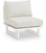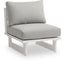 Create your own custom contemporary look on the deck or porch with the addition of this Maldives outdoor patio armless chair. Part of a large collection that lets you mix and match modular pieces to get the look you crave most. This armless chair has water resistant fabric with a base made from white aluminum, so it's sturdy, tough, and ready to face the elements with impeccable beauty, season in and season out. Shop the contemporary pieces in this collection to create the outdoor entertaining area of your dreams.