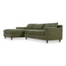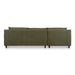 The Hutton sectional features soft-to-the-touch chenille fabric constructed from 100% polyester treated with C0 performance technology. A traditional higher back and tapered dark wood legs nod to mid-century aesthetics while providing contemporary coziness as a plush feather topper ensures unparalleled comfort.