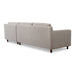 The Hutton sectional features soft-to-the-touch chenille fabric constructed from 100% polyester treated with C0 performance technology. A traditional higher back and tapered dark wood legs nod to mid-century aesthetics while providing contemporary coziness as a plush feather topper ensures unparalleled comfort.