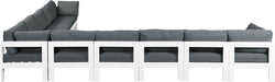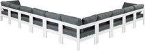 Nizuc - Outdoor Patio 10 Piece Modular Corner Sectional With White Frame - Gray