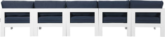 Nizuc - Outdoor Patio 5 Piece Modular Armless Sofa With White Frame - Navy