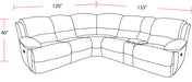 133.0"W x 120.0"D x 40.0"H - 460.8 lb