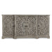 Elevate your space with this exquisite 4-door mango wood sideboard, featuring intricately hand-carved floral panels that blend artistry with function. The rich finish highlights the natural grain, while antique-style ring pulls add a refined touch. Offering generous storage behind four beautifully detailed doors, this artisan sideboard is perfect for dining rooms, entryways, or living spaces. A timeless piece for those who value craftsmanship, global design, and elegant statement furniture.