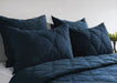 Saturated color and a classic, hand-stitched diamond pattern give this collection a casual yet elegant appeal. Woven from 100% Belgian flax linen, this quilt creates an inviting atmosphere with its indulgently soft hand feel. Bedding should be washed in cold water with mild detergents that do not contain bleach or other whiteners using a large capacity washing machine. Tumble dry on a low heat seating and remove immediately to avoid wrinkles. Villa Bedding is prewashed before packaging to avoid products from shrinking and stiffening. Our Cotton and Linen products become softer with every wash.
