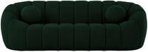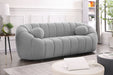 Sit back and relax in casual style when you bring home this Elijah boucle fabric sofa. Inspired by the unmistakably relaxed vibe created by a classic bean bag, this inviting sofa features a rounded design with deep channel tufting for added support and resilience. It comes with an accent pillow for even more welcoming comfort, and the sofa is upholstered all over with rich boucle fabric that beckons you to sit, rest, and take it easy.
