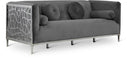 Catch the eyes of all who step foot in your home with this bold Opal velvet sofa. Its stainless steel patterned design creates a contemporary flair against its plush, velvet upholstery, creating a home accent piece that is both comfy and stylish. Its roomy design offers ample room to kick back and relax after a long day, while its stocky shape adds a daring touch to your decor.