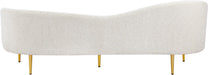 Impress family and guests alike with this Ritz Boucle Fabric Sofa. Wrapped in a cozy boucle fabric, this sofa exudes elegance and comfort. The gold metal legs add a touch of glamour to the overall design, making it a perfect addition to any modern living space. Sit back, unwind, and sink into the plush cushions of this chic and stylish sofa.