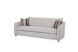 Trilogy Sand Sofa – Timeless Comfort, Effortless Style Designed for both elegance and everyday relaxation, the Trilogy Sand Sofa offers a perfect balance of style and comfort. Upholstered in a soft, neutral-toned fabric, this sofa effortlessly complements a variety of interiors while providing a spacious and cozy retreat. Built for lasting durability, the reversible cushions feature high-density foam and Dacron wrapping, ensuring plush, supportive seating that maintains its shape over time. A sinuous spring system enhances flexibility and resilience, while the padded exterior adds an extra layer of durability for daily use. To complete its inviting feel, the Trilogy Sand Sofa includes two down-filled pillows, offering an extra touch of softness. Whether you're lounging solo, entertaining guests, or enjoying movie nights, this sofa is designed to bring warmth and sophistication to any home.