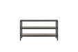 Introducing the Elure Channel Console Table, a sophisticated blend of modern design and rustic charm that elevates any living space. Crafted with meticulous attention to detail, this console table features metal inset shelves in a striking peppercorn finish, making it both a functional and stylish addition to your home. The distinctive peppercorn finish lends a touch of elegance, complementing its sturdy metal frame and adding a contemporary flair to your decor. Whether placed in the entryway, hallway, or living room, the Elure Channel Console Table provides ample space for displaying your favorite decorations, books, or everyday essentials. Designed to seamlessly integrate into any interior aesthetic, from industrial to transitional, this console table is not just a piece of furniture but a statement of timeless craftsmanship and versatility. Bring home the Elure Channel Console Table today and transform your living space into a haven of style and sophistication.