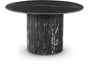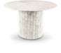 Add a refined look to your room with this handcrafted Genoa dining table, a stunning masterpiece that marries elegance and practicality. Crafted from genuine travertine, each table is a unique work of art, featuring a beige travertine top with intricate white veining. The fluted travertine base adds a touch of art deco design, making it a statement piece in any room and adding to its heirloom-quality design.