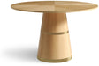 Bring a modern touch to your kitchen or dining area with this Hans lacquer dining table. This round table is sized for an easy fit in any dining space. Its round tabletop features a finish, giving it a high glossy appearance perfect for your contemporary home. Double gold metal stripes on the base add just enough flair to make this an eye-catching piece, and its wood construction ensures sturdiness that will last for years to come.
