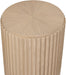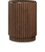 Indulge in the allure of this Ronin End Table. This table is sophisticated and charming, with a stunning finish and a fluted design that enhances the visual appeal of any living room or den. It's built from solid wood, MDF, and oak veneer, ensuring its durability and making it the focal point of any gathering. The natural wood grain variation gives this end table a unique appearance, while its mid-century design enables it to blend seamlessly into any space you choose to use it in.