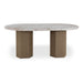 Gillian Segal for Moe's The Sartoria dining table invites conversation and collaboration. Its thick bullnose edge top is crafted with bold marble, a signature material for Gillian known for its European flair. A jute-wrapped pedestal base complements the vibrant top for a touch of organic texture, function, and support for its smooth, inviting form.