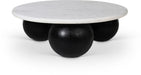 Revolutionize your space with the marble Treviso coffee table, presenting a luxurious sofito genuine marble top and solid mango wood walnut-finished bases. This table combines elegance with robustness to ensure your space radiates sophistication and charm. The three round ball-shaped bases offer a unique Art Deco design that captures attention, making this coffee table the perfect centerpiece for any living room.