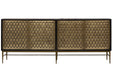 Relaxed meets refined in the chic character of the Cairo multifunctional console. Its distinctive door panels feature and eye-catching pattern of embossed hexagons accentuated in a bronze metal finish. Cairo adds and element of warmth to the room and is destined to be a topic of conversation.