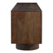 Crafted from reclaimed neem wood, the Hadley media unit celebrates simplicity and natural beauty. Its minimalist silhouette features a substantial 2-inch tabletop and cylindrical bases, artfully balancing form and function. Six sleek doors conceal ample storage, while thoughtful cable management ensures seamless integration.