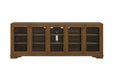 The Tarrington 84" Console is a striking blend of timeless elegance and practical function, crafted with Hickory veneers in a warm Almond finish that highlights the natural wood grain. Designed with transitional appeal, this piece features four framed doors accented with decorative metal mesh fronts, offering a sophisticated touch while providing visibility and ventilation for stored items. Behind the doors, spacious shelving provides ample room for media components, books, or decorative pieces. Built with refined detailing and a sturdy structure, the Tarrington Console is perfect as a statement entertainment unit or as a stylish storage solution in living and dining spaces. Its expansive 84-inch width makes it an ideal centerpiece for large rooms, combining durability, craftsmanship, and elevated design.