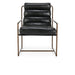 Argo, a sleek accent chair combines modern design with industrial charm. Upholstered in rich black leather with a ribbed back and seat, it offers both style and comfort. The slim metal frame adds an airy, contemporary touch, making it a versatile piece for living rooms, offices, or reading nooks. Perfect for those who appreciate minimalist elegance with a bold edge.