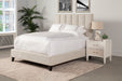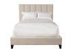 An elegant upholstered bed, Avery makes a bold statement in style. Upholstered in a chenille fabric, its vertical channel quilting lends a touch of modern distinction and creates a pillow-soft headboard. The upholstered footboard and siderails are complemented by tapered wood feet that complete this fashionable look.