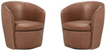 Barolo - 100% Italian Leather Swivel Club Chair (Set of 2) - Vintage Caramel