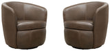 Barolo - 100% Italian Leather Swivel Club Chair (Set of 2) - Vintage Brown