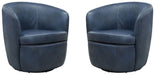 Barolo - 100% Italian Leather Swivel Club Chair (Set of 2) - Vintage Navy