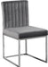 Take dining to a posh new level with this Giselle Dining Chair. A boxy design makes it a nice addition to contemporary spaces, and it's armless design makes it easy to get into and out of with ease. The seat and back are upholstered in rich velvet for a lavish vibe and a pop of sumptuous color to liven up your room, and both are padded well to make sure diners stay comfy while they enjoy their meal. The metal frame is finished in silver for added beauty and aesthetic appeal.