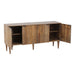 An elegant mix of organic allure and practical function, the Infinity sideboard is a sleek, contemporary design with two adjustable interior shelves that provide plenty of versatile hide-away storage options. Unexpected pops of pattern and playfulness circle its four swinging doors, adding depth and texture to the dark, moody, solid mango wood construction.