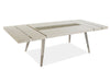 Gracefully-designed with a modern sensibility, the simple contemporary profiles of the Lenox Collection of dining room furnishings come alive with architectural elements and mixed materials including wood, metal, glass and clear mirror. Crafted of Random Width Cathedral White Oak Veneer and Hardwood Solids, Lenox combines the soft Acadia White finish with Warm Silver metal accents and Bronze Glass for a refined and romantic elegant glam. A signature geometric fretwork in the Warm Silver finish appears on the dining chair backs, giving a designer flair to the collection. Metal ferrule caps in the warm silver finish on the dining table, chair and bench legs are a sophisticated touch and complement the Silver Mist hardware. Bring grace and glamour to your home with the Lenox Collection.