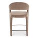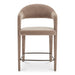 The Martens counter stool features an open barrel back and a continuous curve from leg to frame. Its fabric upholstery is complemented by generously padded seating, marrying comfort with a clean, uncluttered design. Armrests introduce a note of formality, while the airy back lends a touch of lightness and sophistication.
