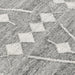 Framed by diamonds, this chic gray rug features an abstract geometric pattern in soft, neutral hues. Elevate any indoor or outdoor setting with the versatile beauty of this rug. Handwoven from polyester yarn, this rug effortlessly blends durability with timeless style.