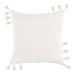 Handcrafted with knotted embroidery and genuine leather appliques, this refreshing pillow brightens a room while adding modern visual interest. Three tassels adorn each side, creating additional texture and movement. Leather is a natural material, and subtle variations in color and texture are part of its unique character.
