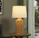 This table lamp seamlessly combines natural textures with modern elegance. Featuring a handcrafted rattan base in a cylindrical shape, it exudes a warm and organic appeal. The neutral fabric shade beautifully complements the rattan, softly diffusing light to create a cozy ambiance. Supported by a durable metal frame, this lamp offers both style and longevity. Perfect for bedrooms, living rooms, or entryways, it brings a touch of earthy sophistication to any space.