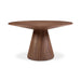 Spanning almost five feet, the circular Otago dining table can seat up to eight people in style. The all-walnut base and top give this table a sleek, warm aesthetic, allowing it to fit seamlessly into any dining room setting. Otago's semi-gloss, natural walnut finish and sharp geometric design tops off the contemporary feel.