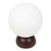 The Ovi table lamp artfully blends mid-century charm with contemporary elegance. An opal glass globe diffuses soft, ambient light, while sleek chrome accents add a touch of sophistication. The sculpted resin base, finished in lustrous color, offers striking contrast and visual intrigue.