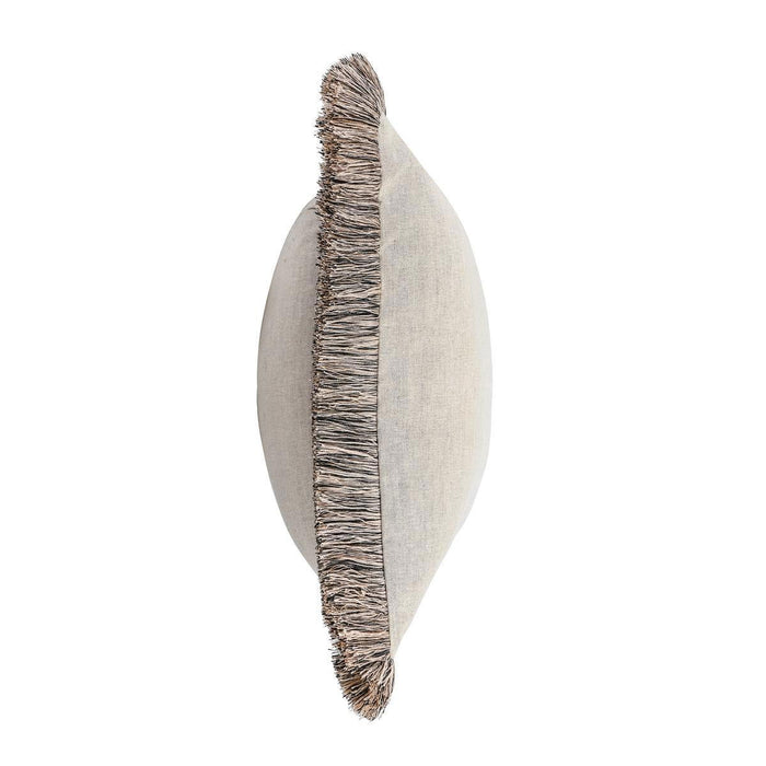 A grounded cotton and linen textured fabric raise the lush texture of fringe around this pillow design. A perfect pillow for layering, a soft feather and down blend insert gives this pillow a lavish supportive feel that makes it as comfortable as it is beautiful.
