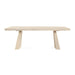 The Sanford Dining Table features FSC® Certified oak veneer with a sleek pedestal base and minimal design. Its smooth edges and natural wood finish create a tranquil atmosphere, making it a perfect addition to your dining space. This table effortlessly blends style with function, offering a serene and inviting environment for family meals and gatherings.
