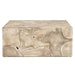 The Sorrento Coffee Table is crafted from teak wood, showcasing an organic modern design. The natural design of the wood highlights its unique grain and texture, adding a warm and earthy touch to your living space.