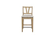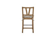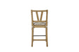 The Tarrington Counter Height Slat Back Counter Stools bring timeless farmhouse charm and comfort to your dining or kitchen space. Crafted with wood for lasting durability, these stools feature a classic slat back design that offers both style and support. Each stool is designed with a rush woven seat, enhanced with a tie-on cushion in soft fabric for added comfort and a tailored look. The warm finish highlights the natural beauty of the wood, making these stools a versatile addition to casual and transitional interiors. Perfect for counter-height dining or kitchen islands, they blend comfort, function, and rustic elegance.