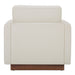 The Vernon accent chair blends mid-century design with modern functionality. It features a wooden plinth base for an elevated, lighter appearance. This chair offers unmatched comfort with removable cushions. Upholstered in durable, OEKO-TEX and Green Guard-certified fabric, it is ideal for family living, combining everyday practicality with durability.